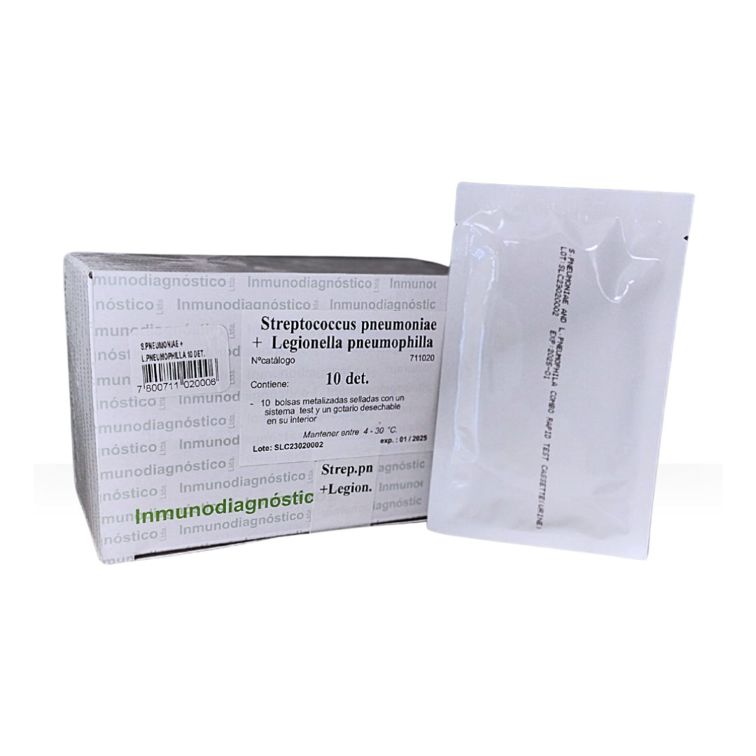 Prueba inmunocromatográfica rápida para la detección cualitativa del antígeno del Estreptococcus pneumoniae y el antígeno de Legionella pneumophilla en muestra de orina humana. S. pneumoniae: Sensibilidad Relativa: 90,0 %; Especificidad: 98.9% L. pneumophila: Sensibilidad Relativa: 97,0 %; Especificidad 98.6%